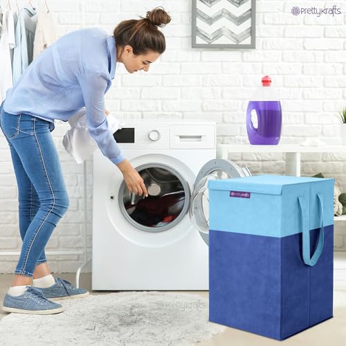 PrettyKrafts 75 L Laundry Basket for Clothes with Lid | Laundry Bag Foldable | Laundry Bag for Clothes | Clothes Basket | Basket for Clothes Storage | Toy Storage Basket…,
