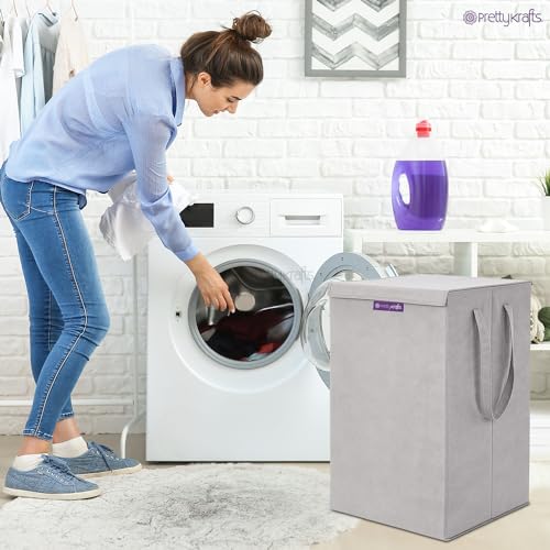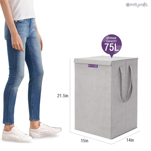 PrettyKrafts 75 LTR Laundry Basket for Clothes with Lid | Laundry Bag Foldable | Laundry Bag for Clothes | Clothes Basket | Basket for Clothes Storage | Toy Storage Basket…,