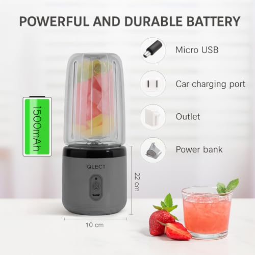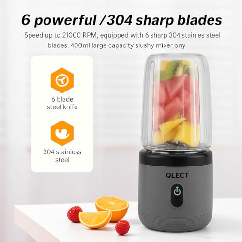 Qlect Portable Blender Electric Juicers Fruit Mixers USB Rechargeable Smoothie Mini Personal Juicer 6 Blades With 1500 Mah Rechargeable Battery-Smoothie Blender,