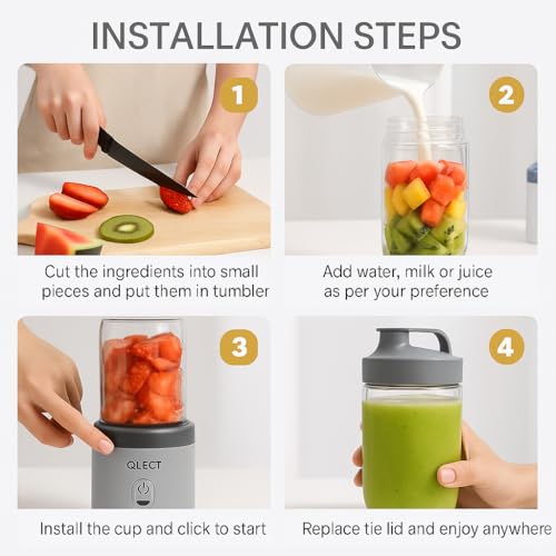 - 【Easy to Use Juice Mixer 】-This is a 𝐨𝐧𝐞-𝐭𝐨𝐮𝐜𝐡 𝐨𝐩𝐞𝐫𝐚𝐭𝐢𝐨𝐧 smoothie maker, put in the ingredients, tighten the blending bottle and base, double click the button to blend and you can get a delicious drink in 30s. Each indicator light represents 25% power.This juice blender is best kitchen gadget as smoothie maker, shaker mixer, hand mixer blender, mini juicer and hand juicer..