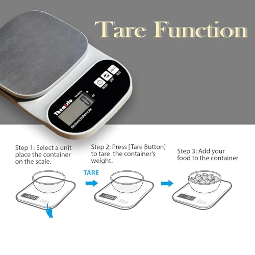 • EASY TARE FUNCTION: Calculate net weight of ingredients by subtracting empty bowl or container weight. Press TARE button to reset scale to zero & weigh while adding ingredients to same container