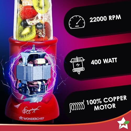 Wonderchef Nutri-blend 500W Mixer Grinder, 22000 RPM Motor, Smoothie Maker, Masala Grinder, Chutney Blender, 3 Unbreakable Jars, Recipe Book by Chef Sanjeev Kapoor, 2 Yr…,